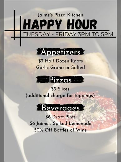 Happy Hour: Tuesday - Friday 3pm - 5pm